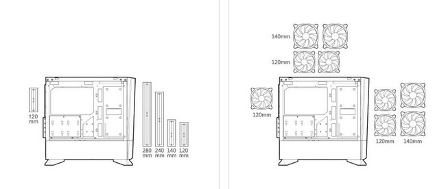 Компактная компоновка MG140 Air RGB позволяет установить пять вентиляторов, 280-миллиметровый радиатор водяного охлаждения и 160-миллиметровый кулер для процессора. Этот огромный потенциал охлаждения позволит вам свободно выбирать компоненты, не боясь перегрева системы.