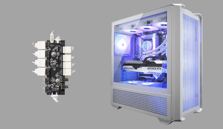MX600 RGB оснащен встроенными концентратором, который обеспечивает плавную координацию скорости вращения вентиляторов с PWM и RGB-подсветкой. Это позволяет вам управлять RGB-подсветкой без необходимости использования программного обеспечения или синхронизировать ее с программным обеспечением материнской платы.