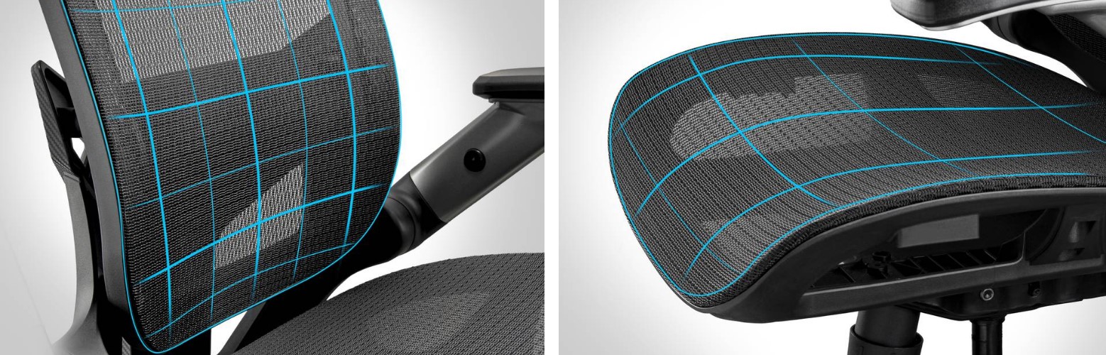 Сетчатая ткань обеспечивает воздухопроницаемость сиденья, идеально подходит для долгих часов игры или работы.