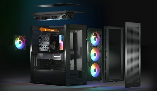 Съемная верхняя и передняя панель обеспечивают беспрепятственный доступ к внутренней части, предоставляя вам очень большое пространство, которое делает сборку вашей системы максимально комфортной.