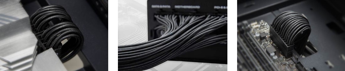 Гладкий рельефный черный дизайн и оптимальная длина кабеля обеспечивают легкую и эстетичную сборку ПК.
