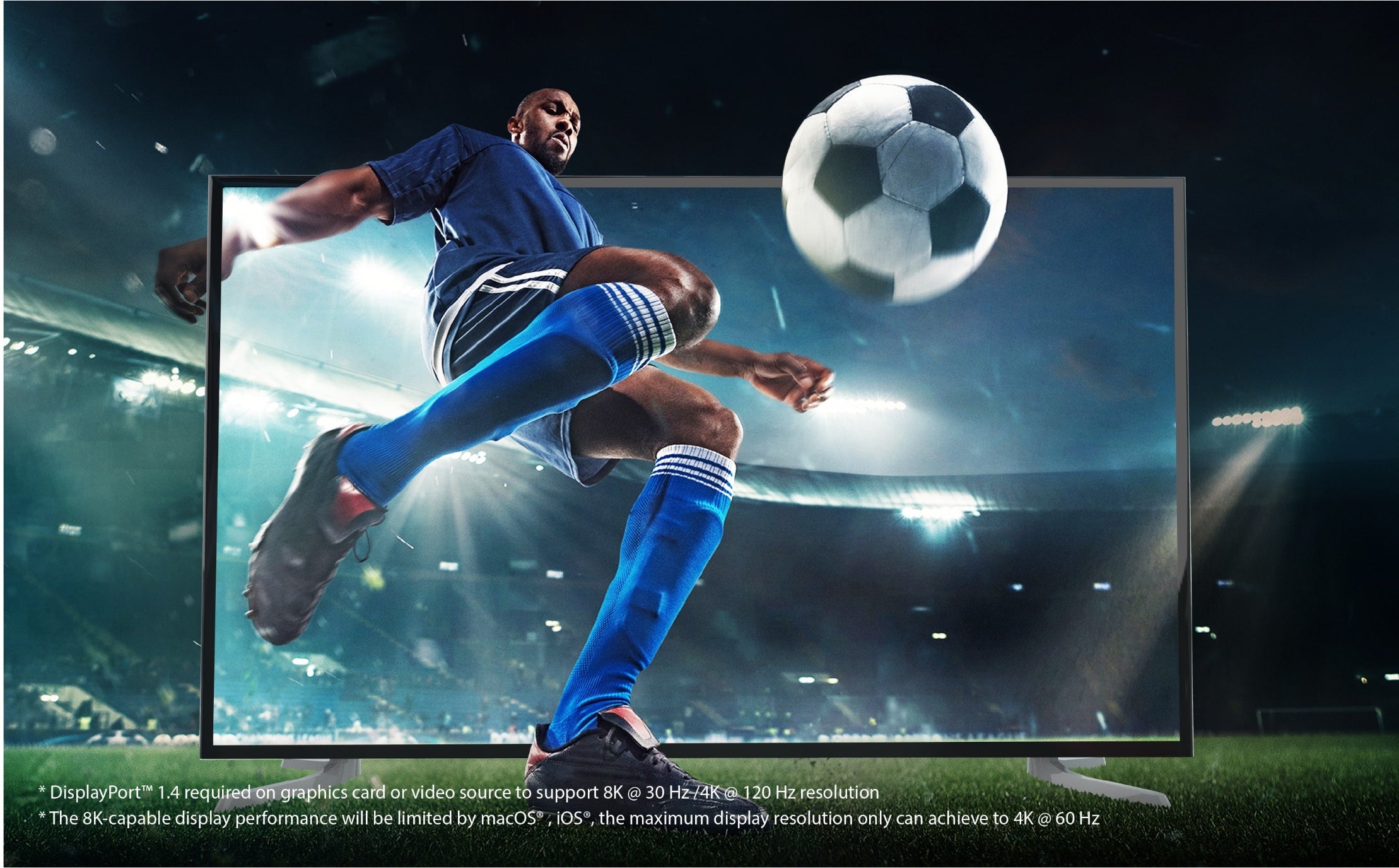 - Для досягнення роздільної здатності 8K @ 60 Гц /4K @ 144 Гц графічний процесор і джерело відеосигналу повинні підтримувати DisplayPort™ 1.4 з DSC.