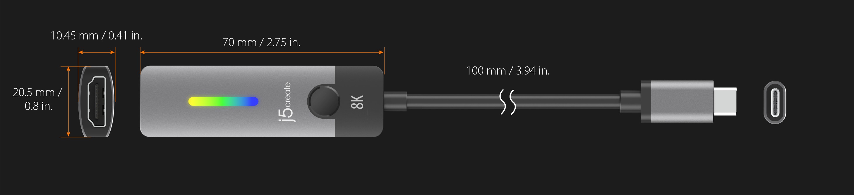 Адаптер-переходник USB-C на HDMI, 8К 60 Гц LED RGB j5create JCA157-N
