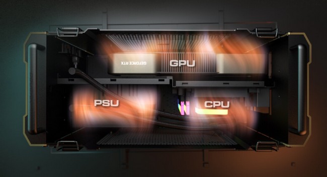 На відміну від традиційних компоновок ПК, всі компоненти яких зібрані на одній стороні, Dust 2 поділено на окремі частини. Графічний процесор, процесор та блок живлення мають незалежні зони вентиляції, що дозволяє ефективно уникати теплових перешкод між ними.