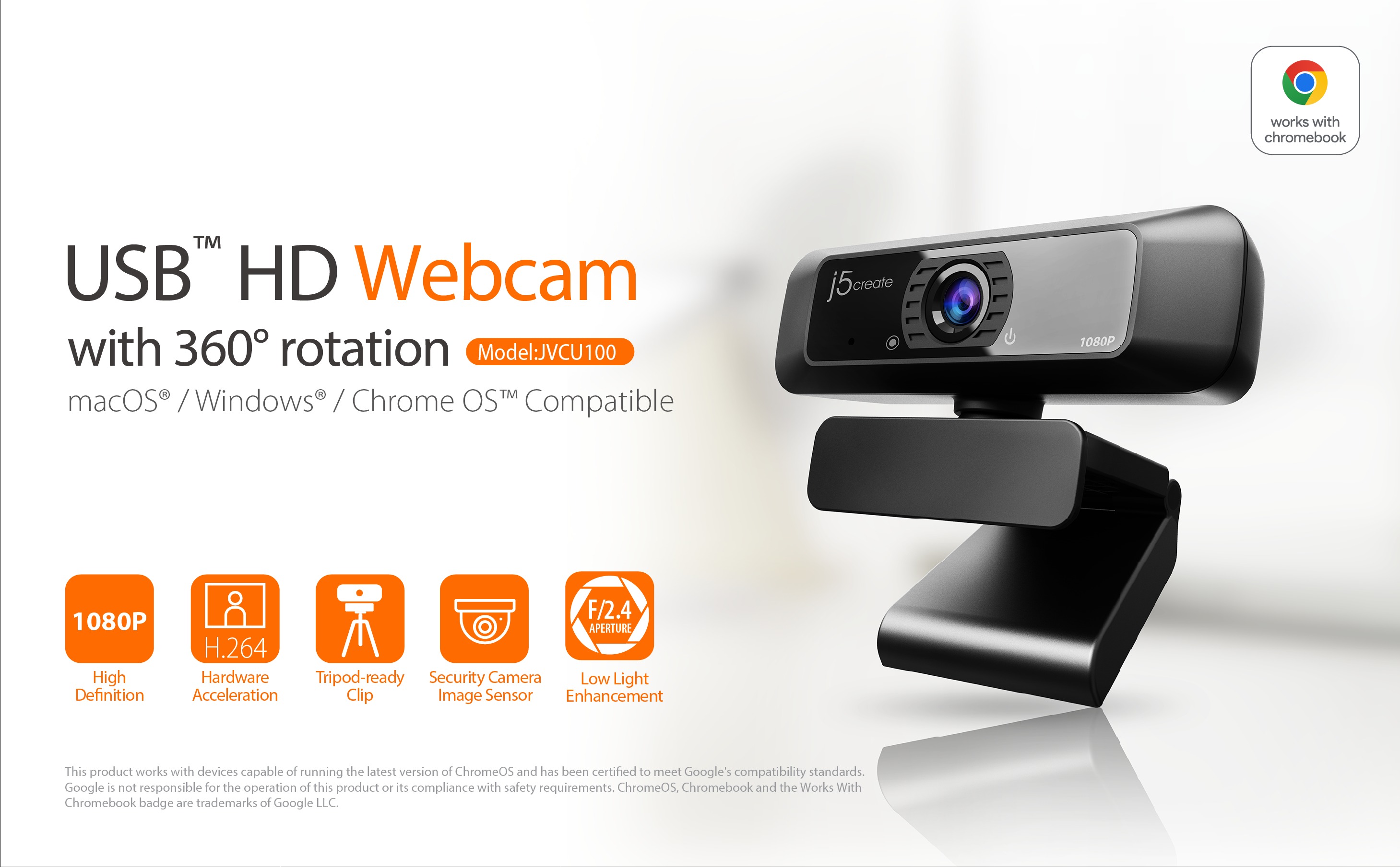 Веб-камера USB™ HD з можливістю повороту на 360° забезпечує роздільну здатність Full HD 1080p для чіткого та детального зображення. Вона ідеально підходить для щоденного використання, оснащена високоякісним мікрофоном для зменшення зовнішнього шуму та підвищеною світлочутливістю, яка автоматично налаштовується відповідно до різних умов освітлення. Крім того, вона має кут огляду 80° і може повертатися на 360° для максимального комфорту використання.