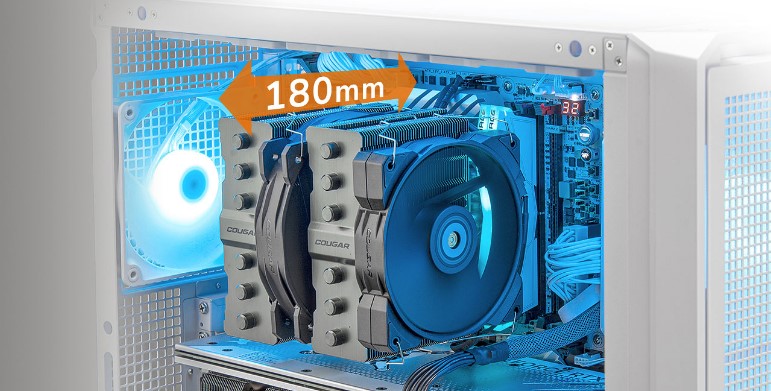 - Макс. висота процесорного кулера: 180 мм