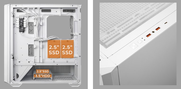 Ігровий корпус для ПК, 3.5"+4*2.5", 3*120 mm, 1*140 mm ARGB Fan Pre-installed, Type C x 1, USB3.0 x2, Audio x 1 Cougar MX600 RGB White