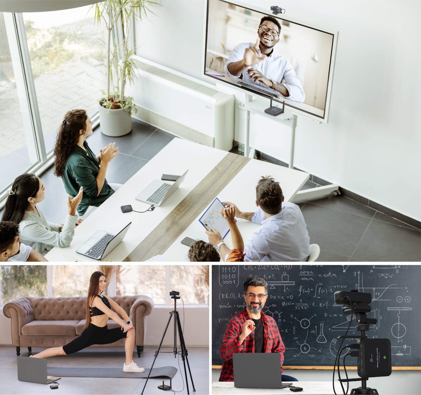 Бездротовий подовжувач j5create для камер USB™ перетворює вашу дротову камеру на бездротову. Завдяки діапазону бездротової передачі до 25 м користувачі можуть розширити діапазон своєї дротової камери USB™ без заплутаних кабелів, незалежно від планування приміщення. Окрім бездротової передачі відео та аудіо, цей компактний і легкий подовжувач для камери працює з пристроями Windows®, macOS® та Chrome OS™, що робить його чудовим доповненням до будь-якої кімнати для нарад, обладнання для стримінгу та інших подібних середовищ.
