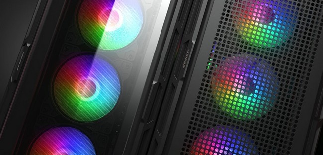 Duoface Pro RGB, обладнаний чотирма 120-мм вентиляторами ARGB і підсвіченим логотипом, дає змогу вам керувати безліччю приголомшливих ефектів підсвітки одним натисканням спеціальної кнопки RGB. Крім того, вбудований контролер повністю сумісний із роз'ємами 5 В ARGB на материнських платах, що забезпечує плавну синхронізацію підсвічування в масштабі всієї системи.