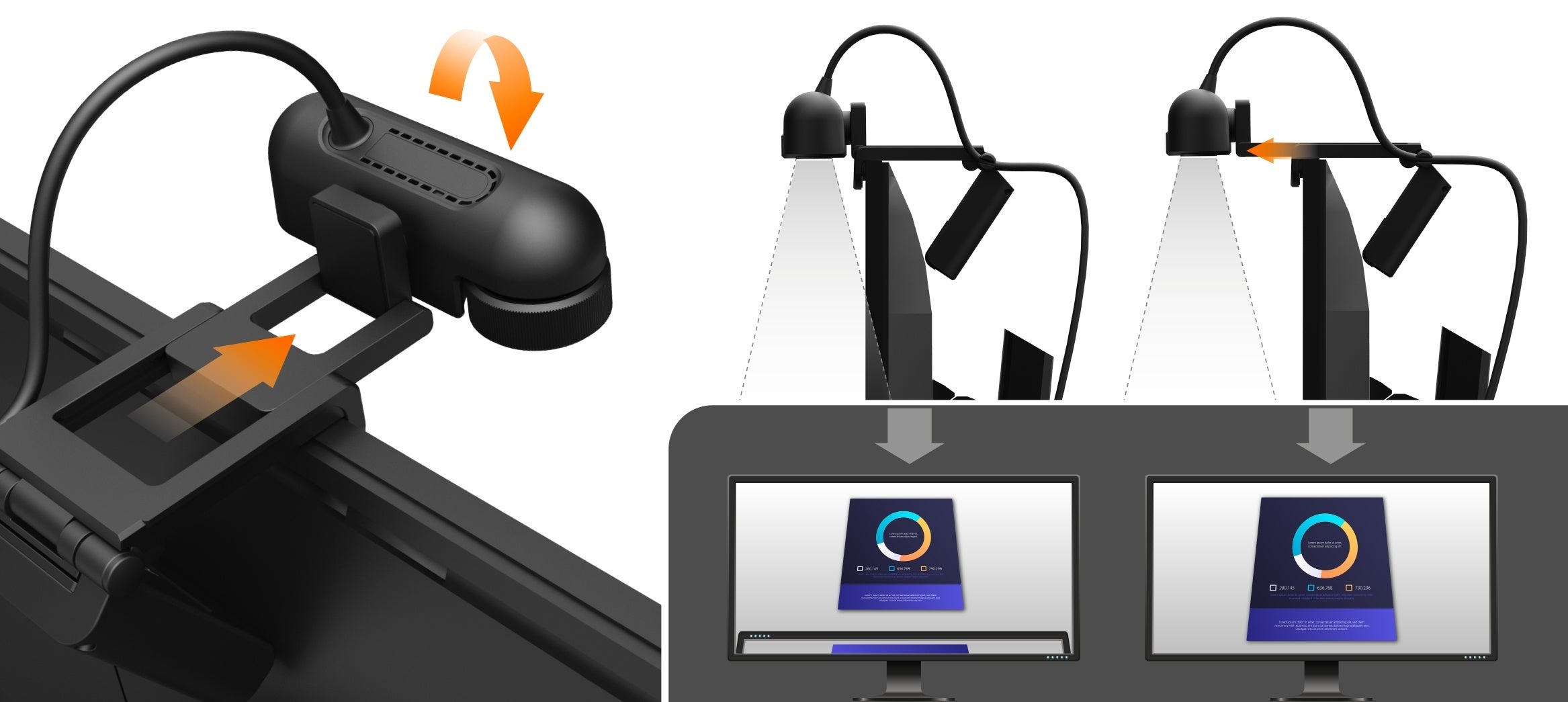 Дозволяє просто розтягнути кріплення веб-камеруи, щоб охопити більшу частину вашої демонстрації.