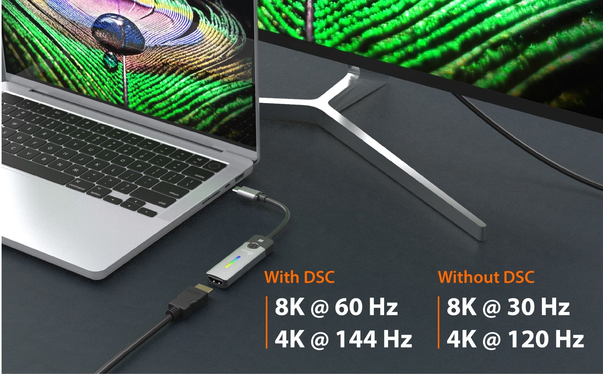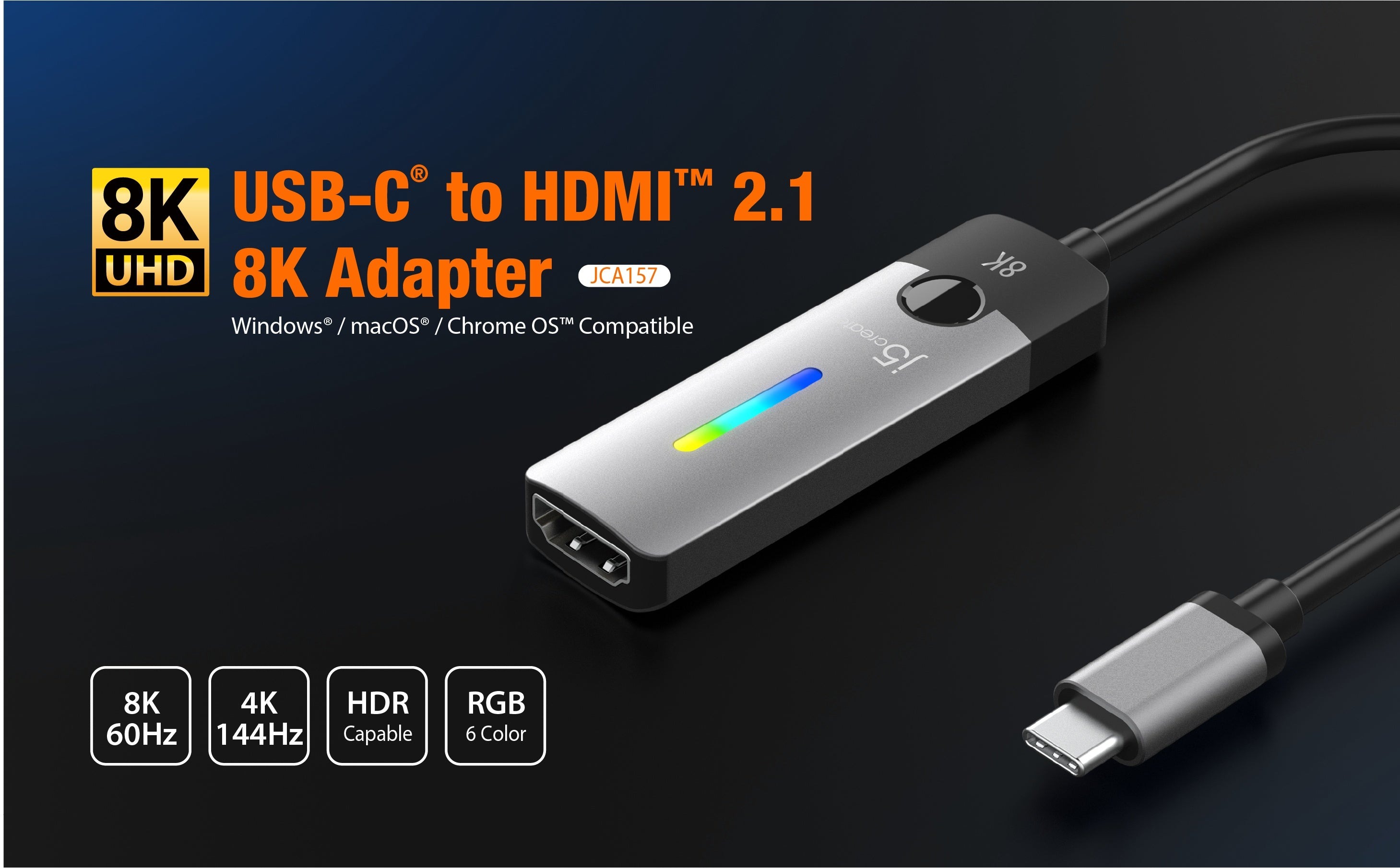 Адаптер-перехідник USB-C на HDMI, 8К 60 Гц LED RGB j5create JCA157-N