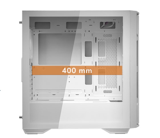 Корпус розрахований на максимальну довжину графічного процесора 400 мм з можливістю горизонтальної/вертикальної орієнтації без кріплень, що забезпечує простір, необхідний для збірки та розширення вашої системи відповідно до ваших вимог.